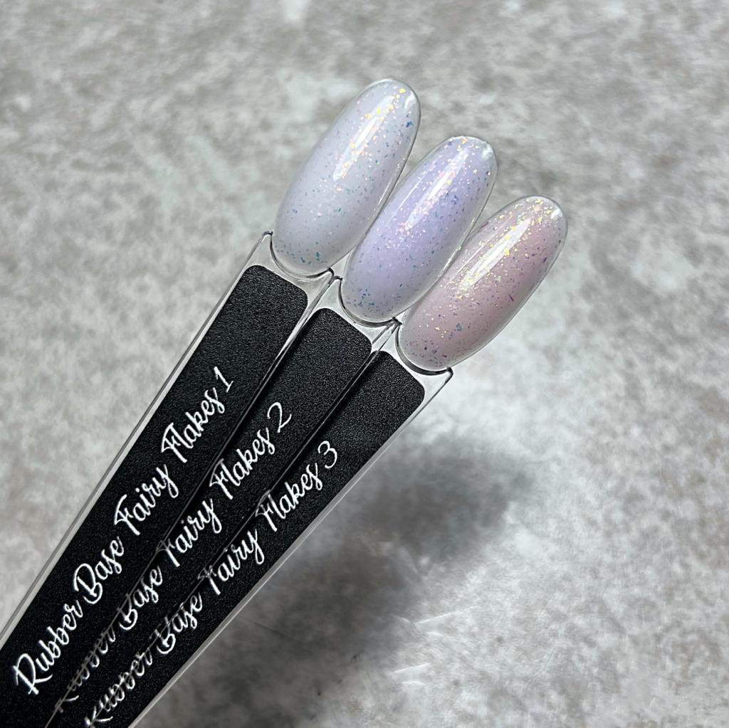 Base rubber con inserciones brillantes que pueden contener purpurina fina, lentejuelas, copos, purpurina con efecto discoteca. Esta gama Rubber Flash contiene destellos con efecto disco y lentejuelas.